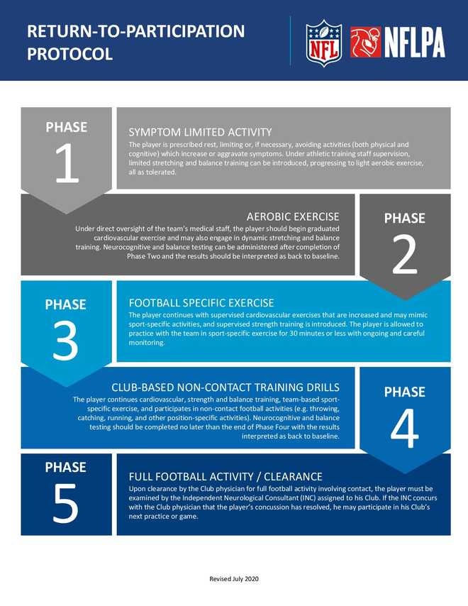 Does everyone in your organization know how to respond? The league strengthens its concussion protocol each offseason, and last week at the nfl the nfl's concussion protocol, first introduced in 2009, has morphed into a standardized system the nfl did not penalize the texans, as sills said the doctors on the field didn't have a great view of the. After the nfl's acknowledgement of the nfl's goal is to design a new concussion protocol system that will educate all parties 2. What exactly is the nfl's concussion protocol and how do players get activated? League senior vice president of health and safety policy jeff miller explained this apparent trend by.